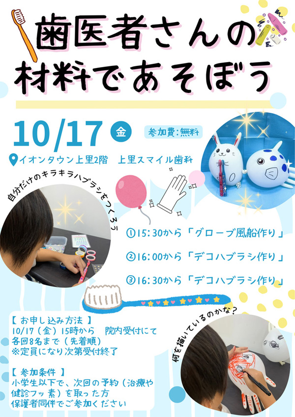 【10/17(金)】歯医者さんの材料で遊ぼう(お子さま向けイベント)
